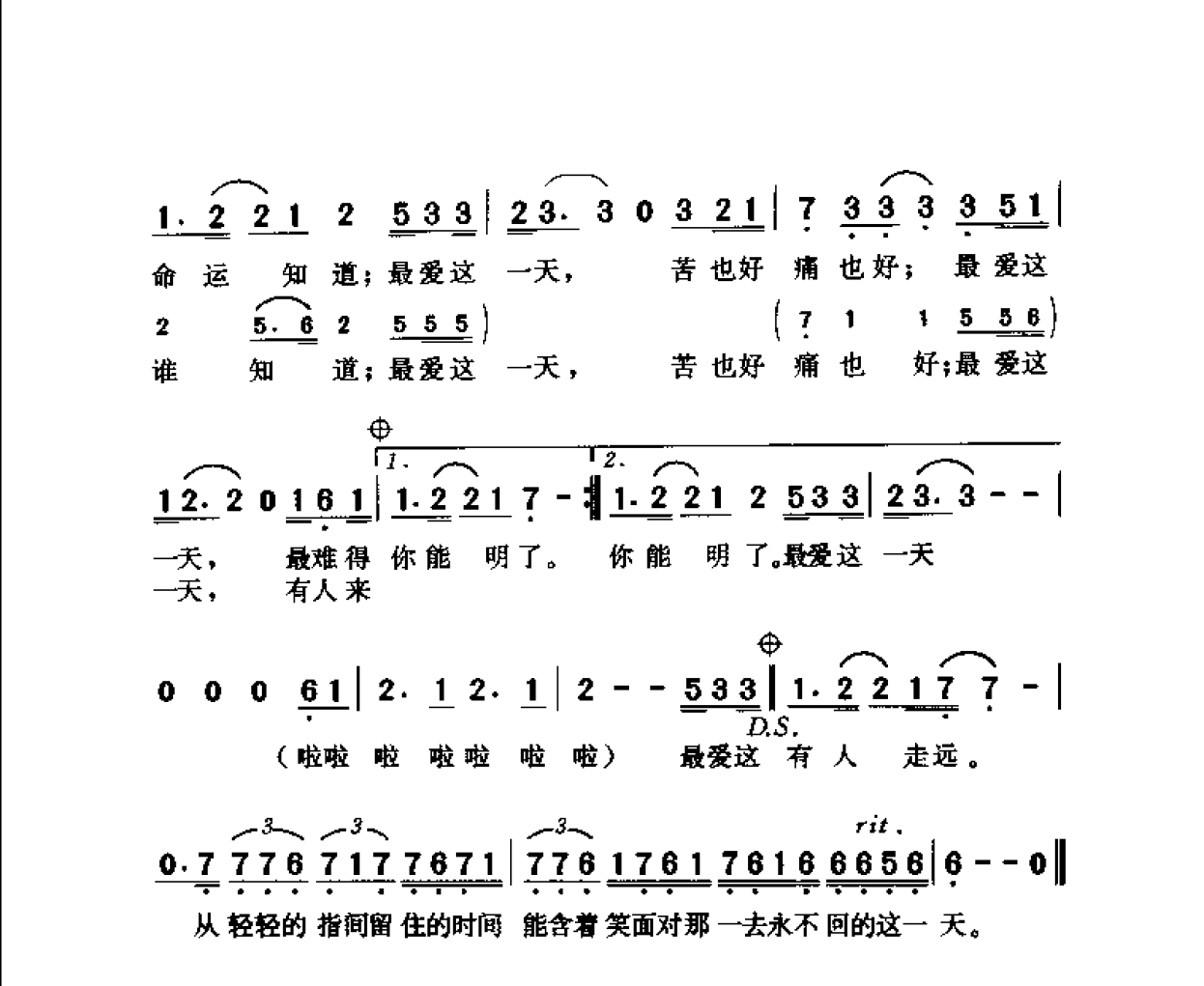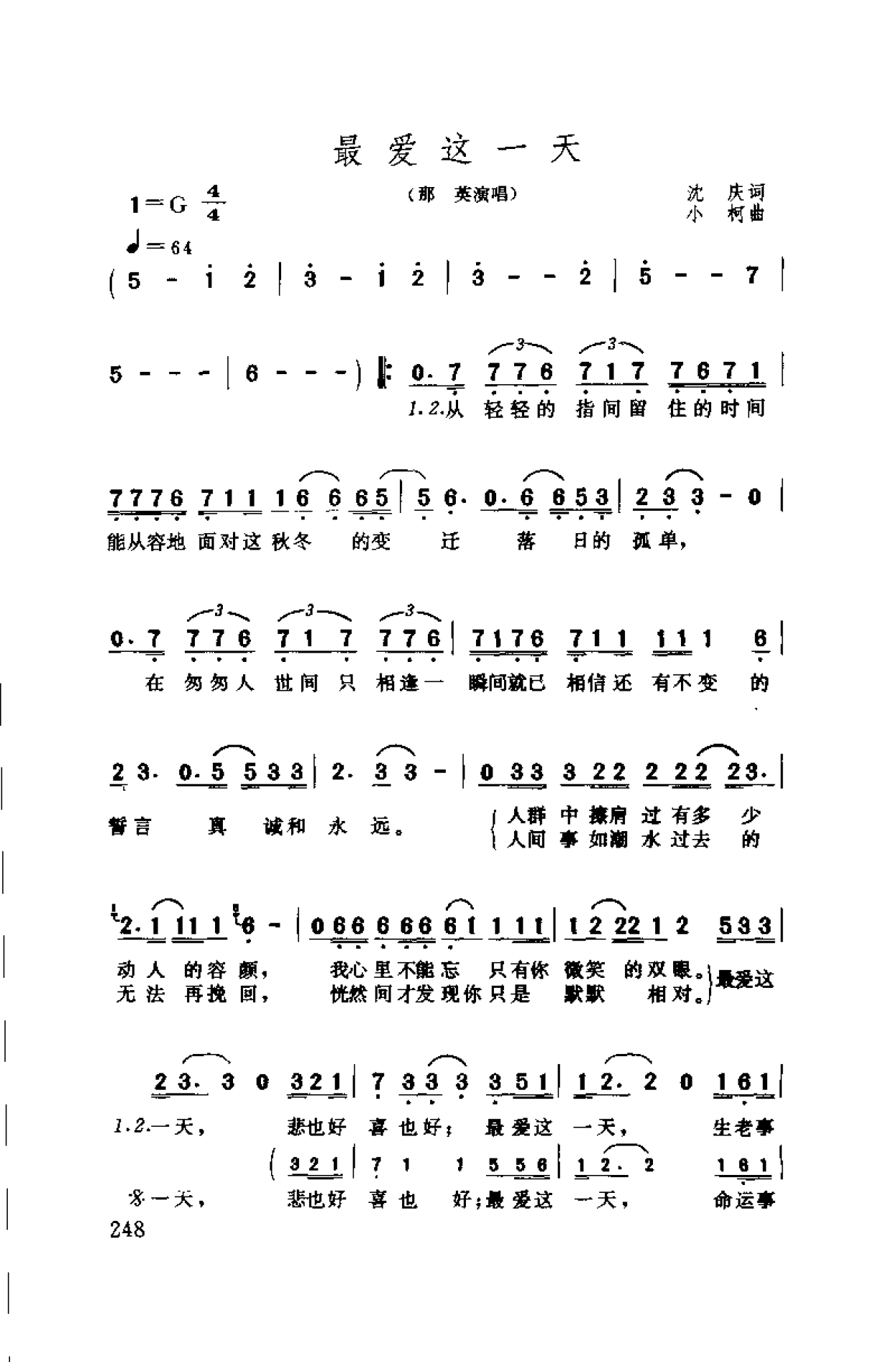 简谱:最爱这一天·1999沈庆词 小柯曲(那英演唱)
