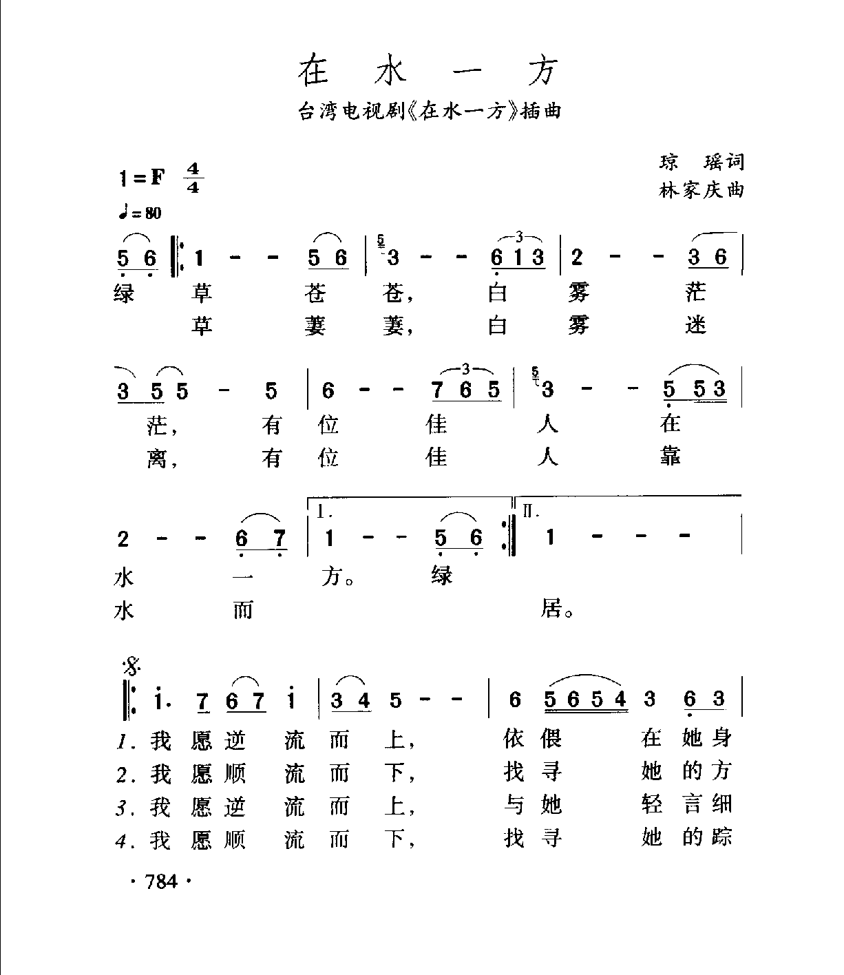 在水一方(台湾电视剧《在水一方》插曲)琼瑶词 林家庆曲