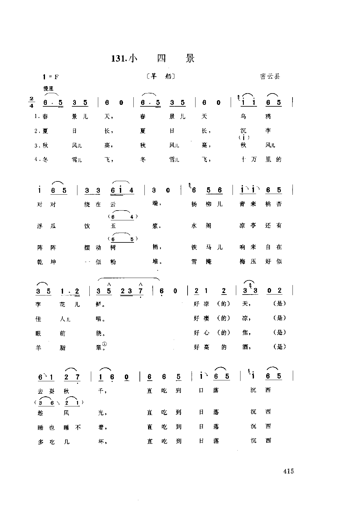花会歌:小四景 密云县(北京民间歌曲简谱)