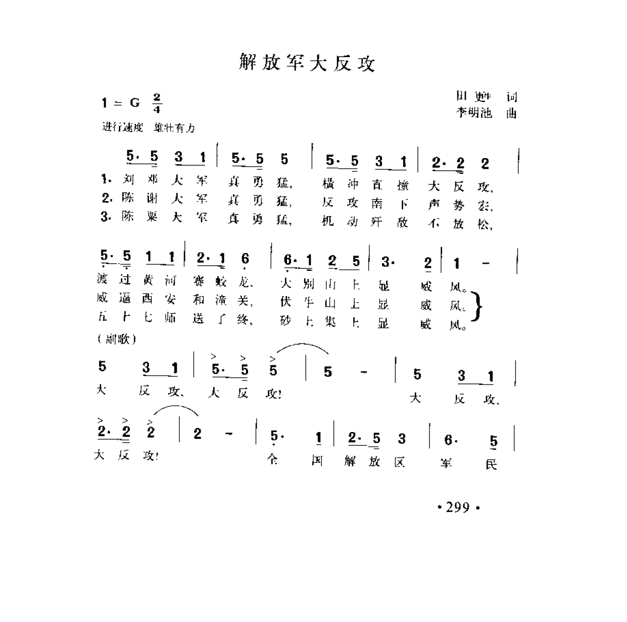 解放军大反攻 田更生词 李明池曲简谱歌词是曲谱查询网于2025年01月12日 16:39:30更新在乐谱大全频道中的内容,收录在乐谱大全栏目中;曲谱查询网分享的解放军大反攻 田更生词 李明池曲简谱五线谱高清图片,欢迎在线免费下载;曲谱查询网无需注册,即可直接下载海量歌曲谱与乐器学习相关资料。