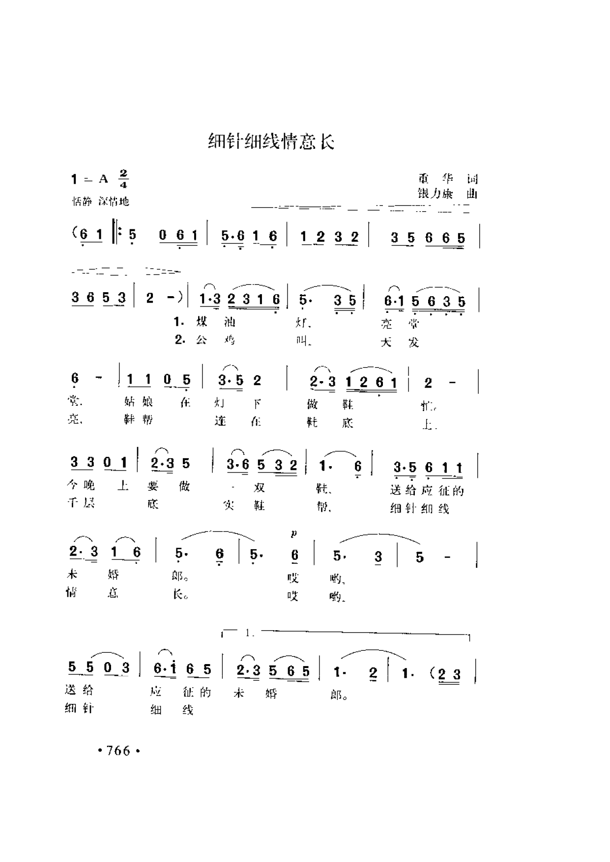 细针细线情意长 重华词 银力康曲简谱歌词是曲谱查询网于2025年01月14日 09:26:21更新在乐谱大全频道中的内容,收录在乐谱大全栏目中;曲谱查询网分享的细针细线情意长 重华词 银力康曲简谱五线谱高清图片,欢迎在线免费下载;曲谱查询网无需注册,即可直接下载海量歌曲谱与乐器学习相关资料。