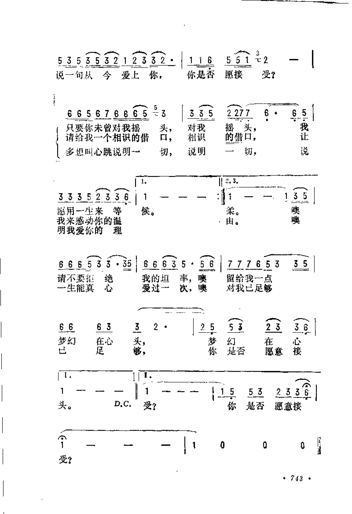 你是否愿意接受(电视剧《台北·香港·青岛特快递传》主题歌)甲丁词 高尔棣曲简谱歌词是曲谱查询网于2025年02月14日 16:41:28更新在乐谱大全频道中的内容,收录在乐谱大全栏目中;曲谱查询网分享的你是否愿意接受(电视剧《台北·香港·青岛特快递传》主题歌)甲丁词 高尔棣曲简谱五线谱高清图片,欢迎在线免费下载;曲谱查询网无需注册,即可直接下载海量歌曲谱与乐器学习相关资料。