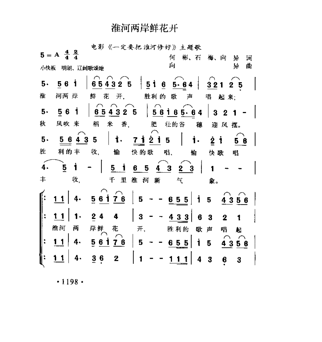 淮河两岸鲜花开(电影《一定要把淮河修好》主题歌)何彬 石梅 向异词曲