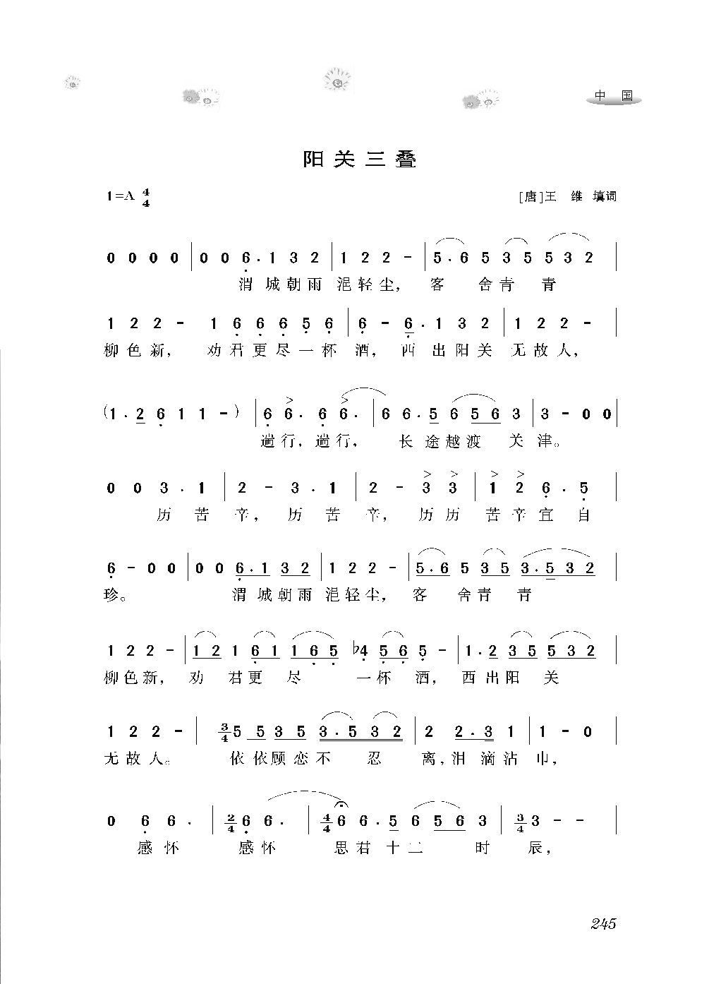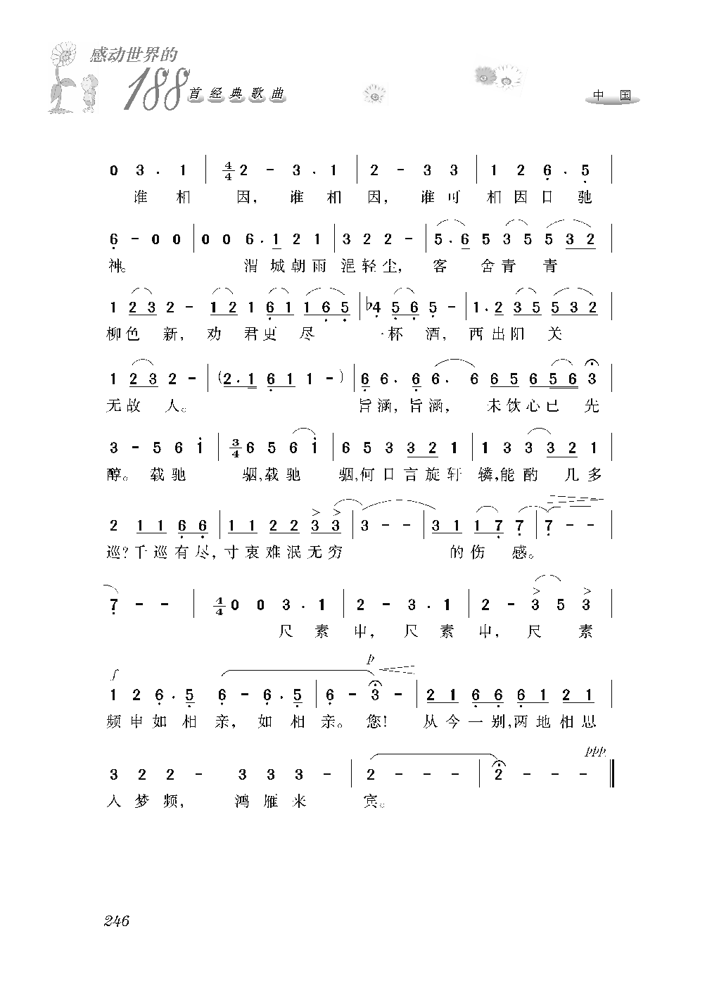 中国经典歌曲谱:阳关三叠 简谱
