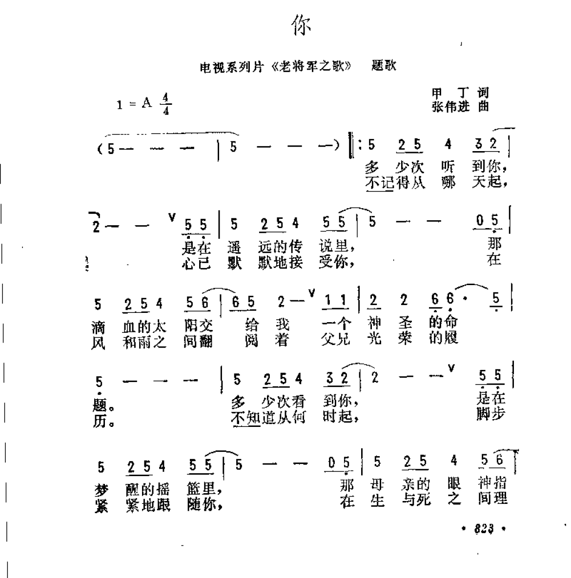 你(电视系列片《老将军之歌》主题歌)甲丁词 张伟进曲