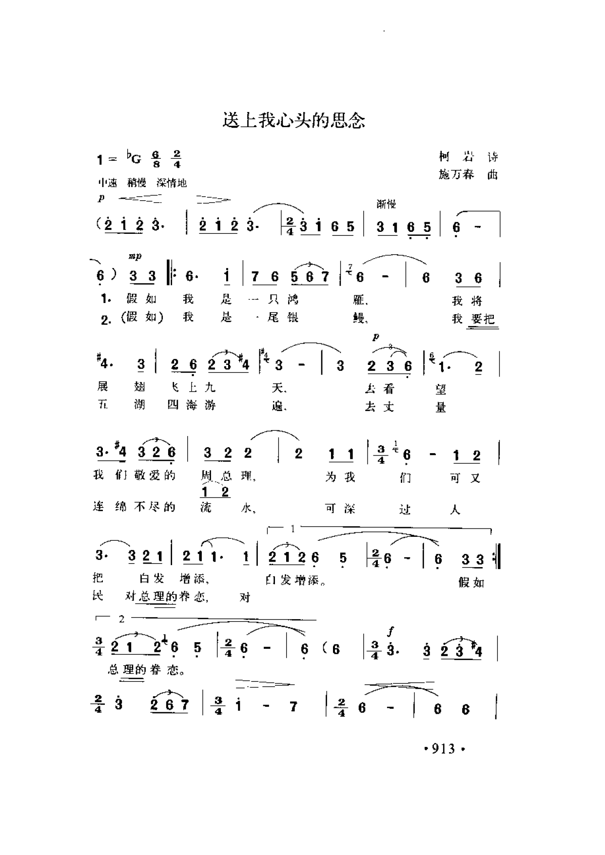 送上我心头的思念 柯岩诗 施万春曲简谱歌词是曲谱查询网于2025年01月14日 10:34:39更新在乐谱大全频道中的内容,收录在乐谱大全栏目中;曲谱查询网分享的送上我心头的思念 柯岩诗 施万春曲简谱五线谱高清图片,欢迎在线免费下载;曲谱查询网无需注册,即可直接下载海量歌曲谱与乐器学习相关资料。