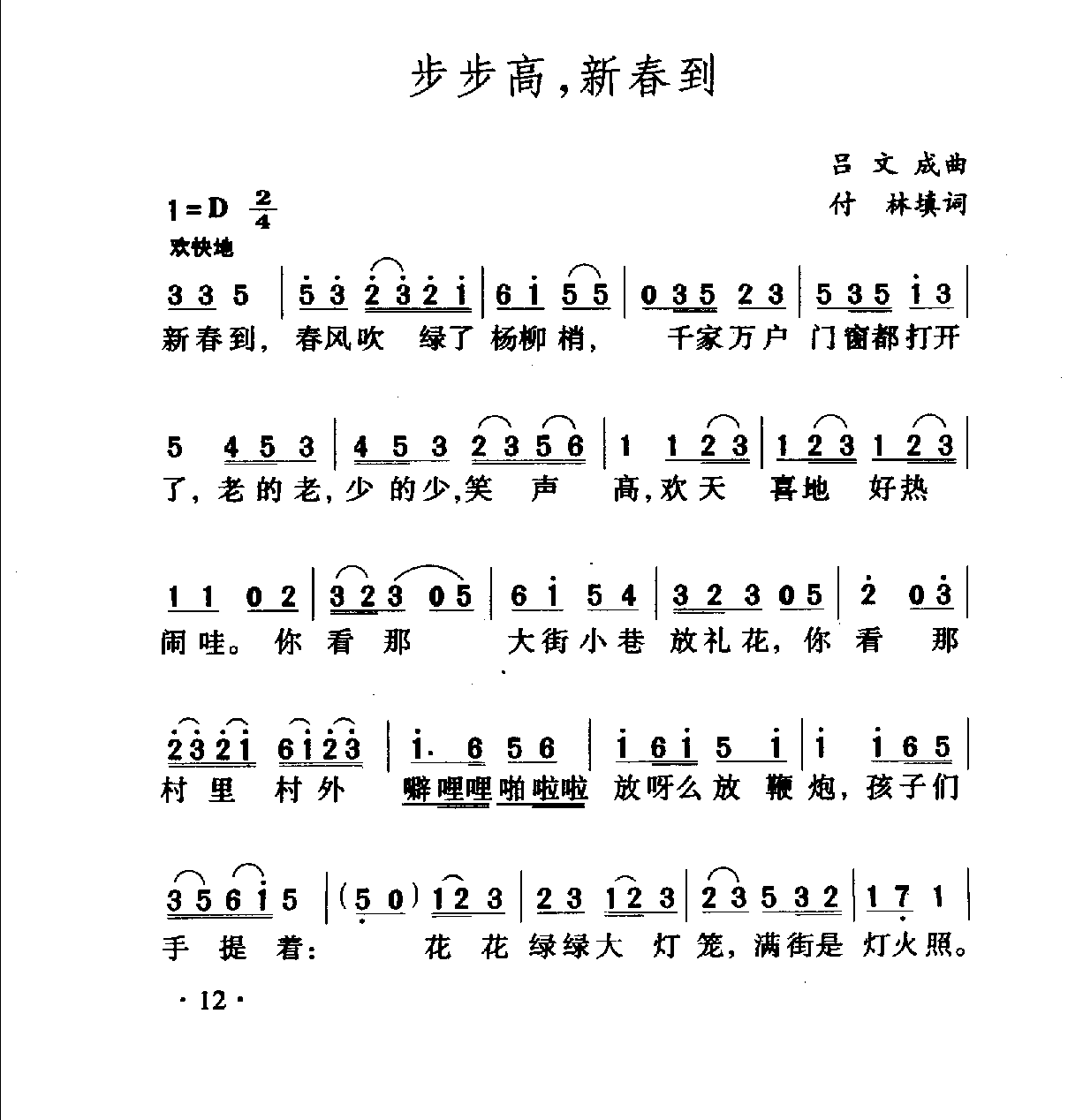 中国名歌500首乐谱:步步高,新春到吕文成曲付林填词