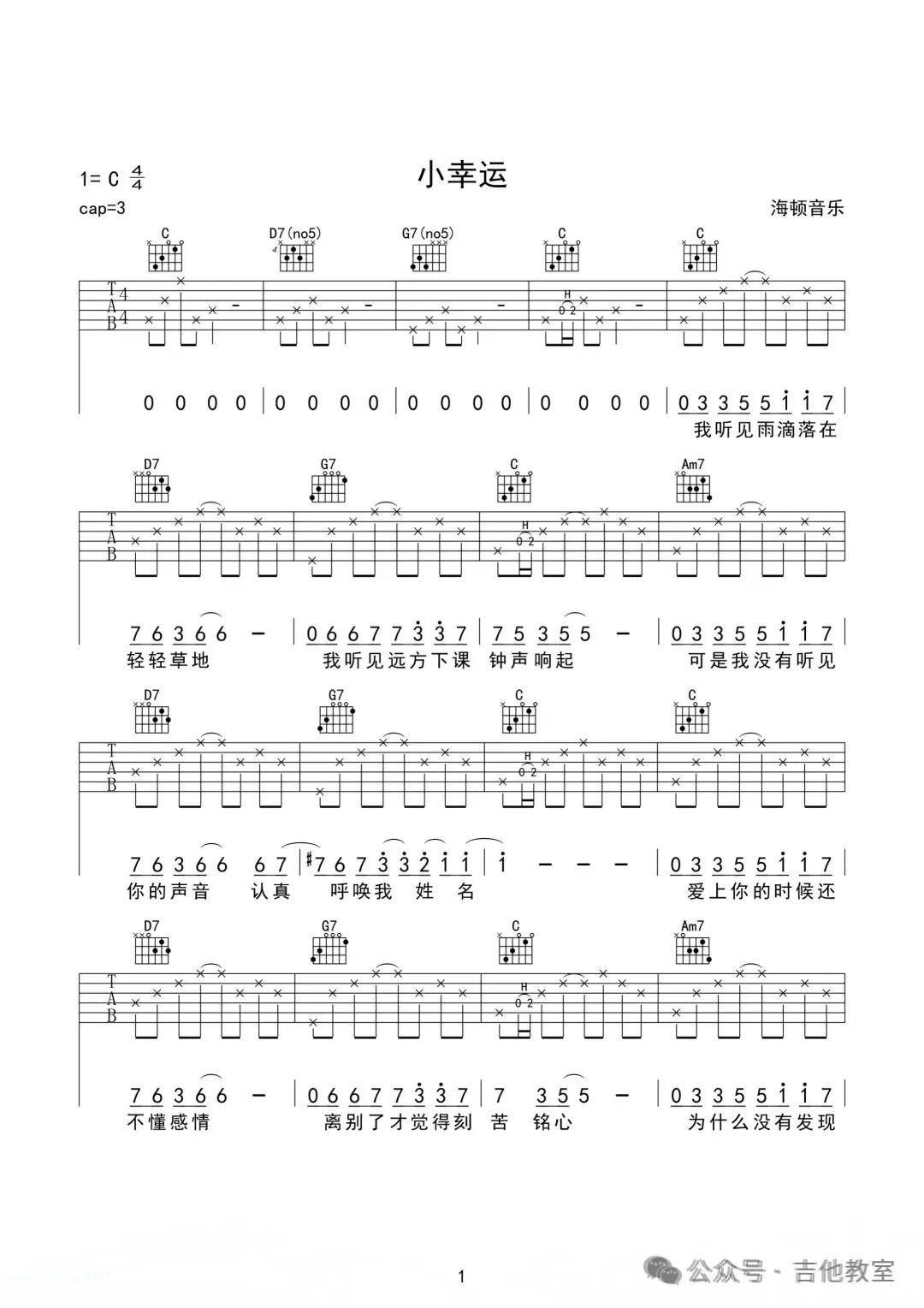 《小幸运》吉他谱