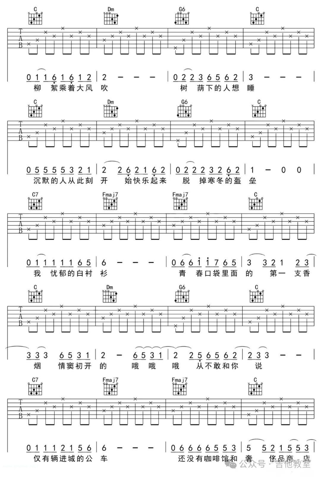 朴树的这首歌曲和弦简单,旋律流畅,适合初学者练习节奏感和情感表达。