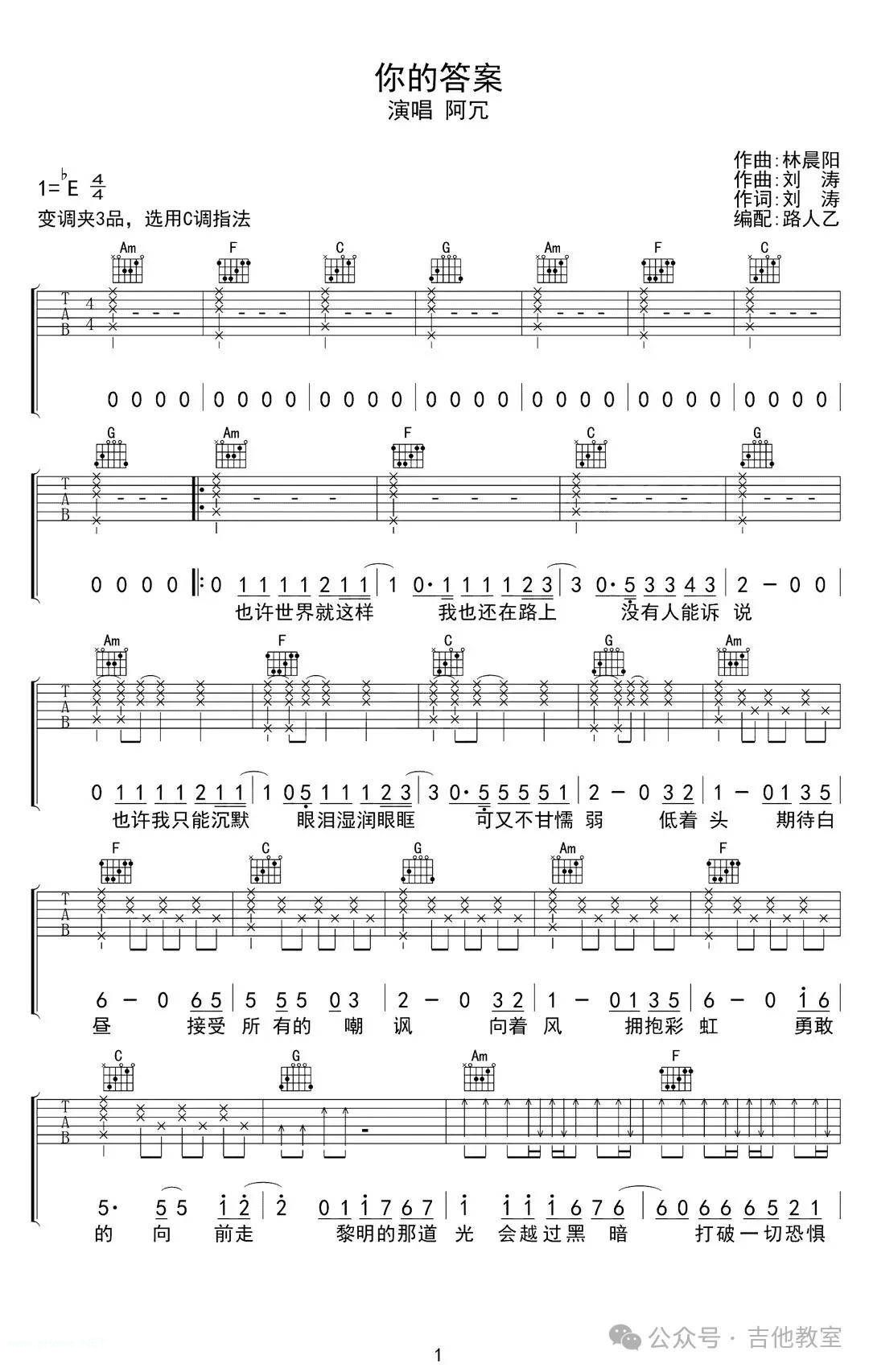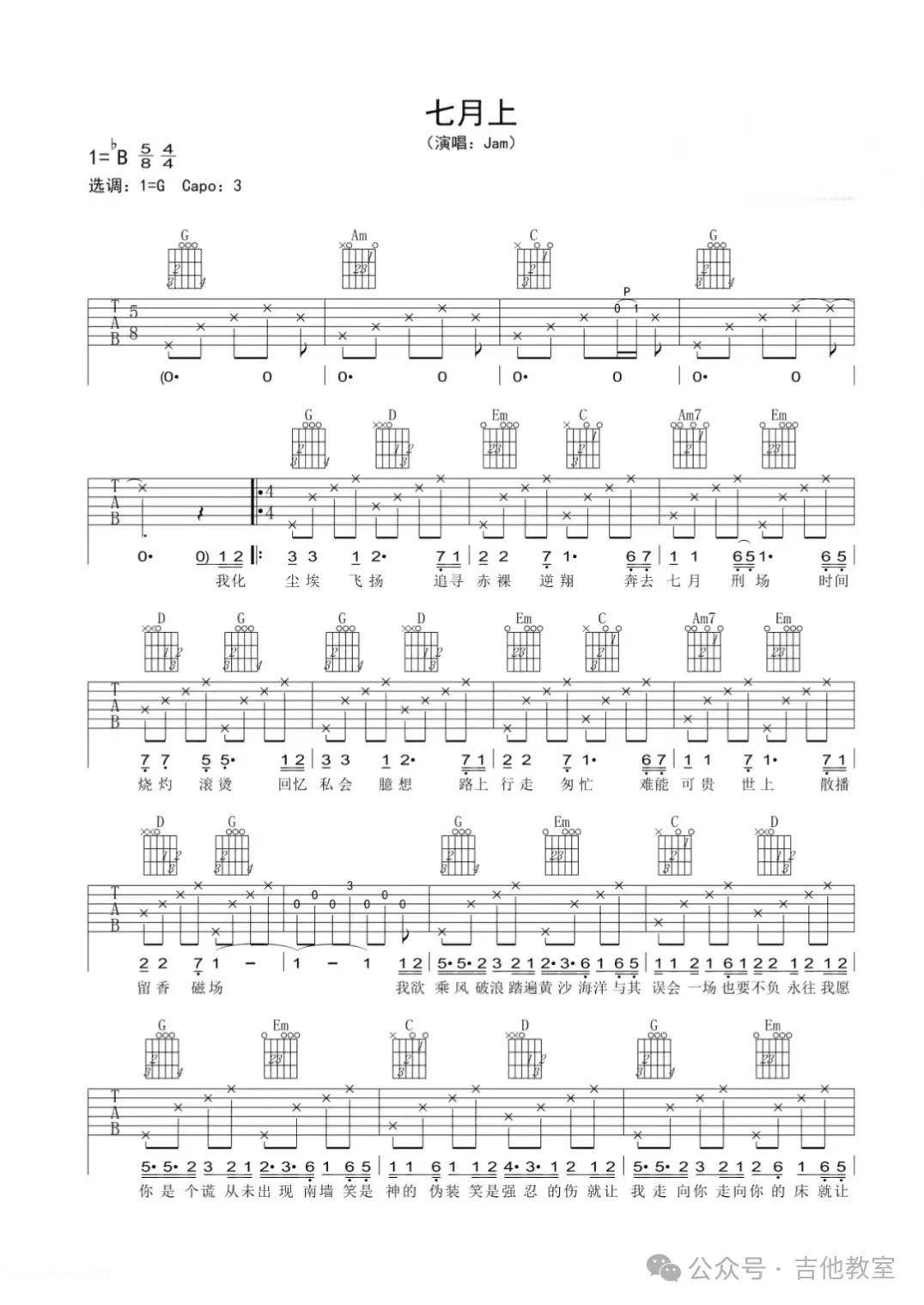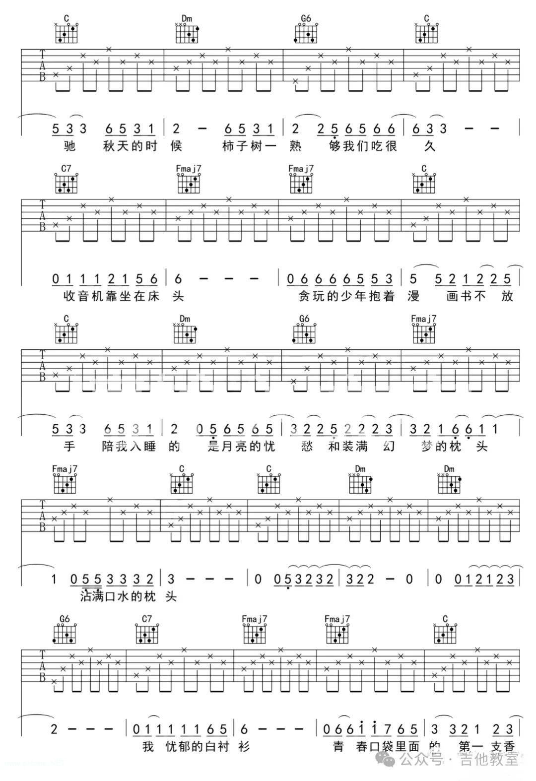 这首歌曲和弦不多,旋律悠扬,适合初学者感受吉他音乐的魅力。