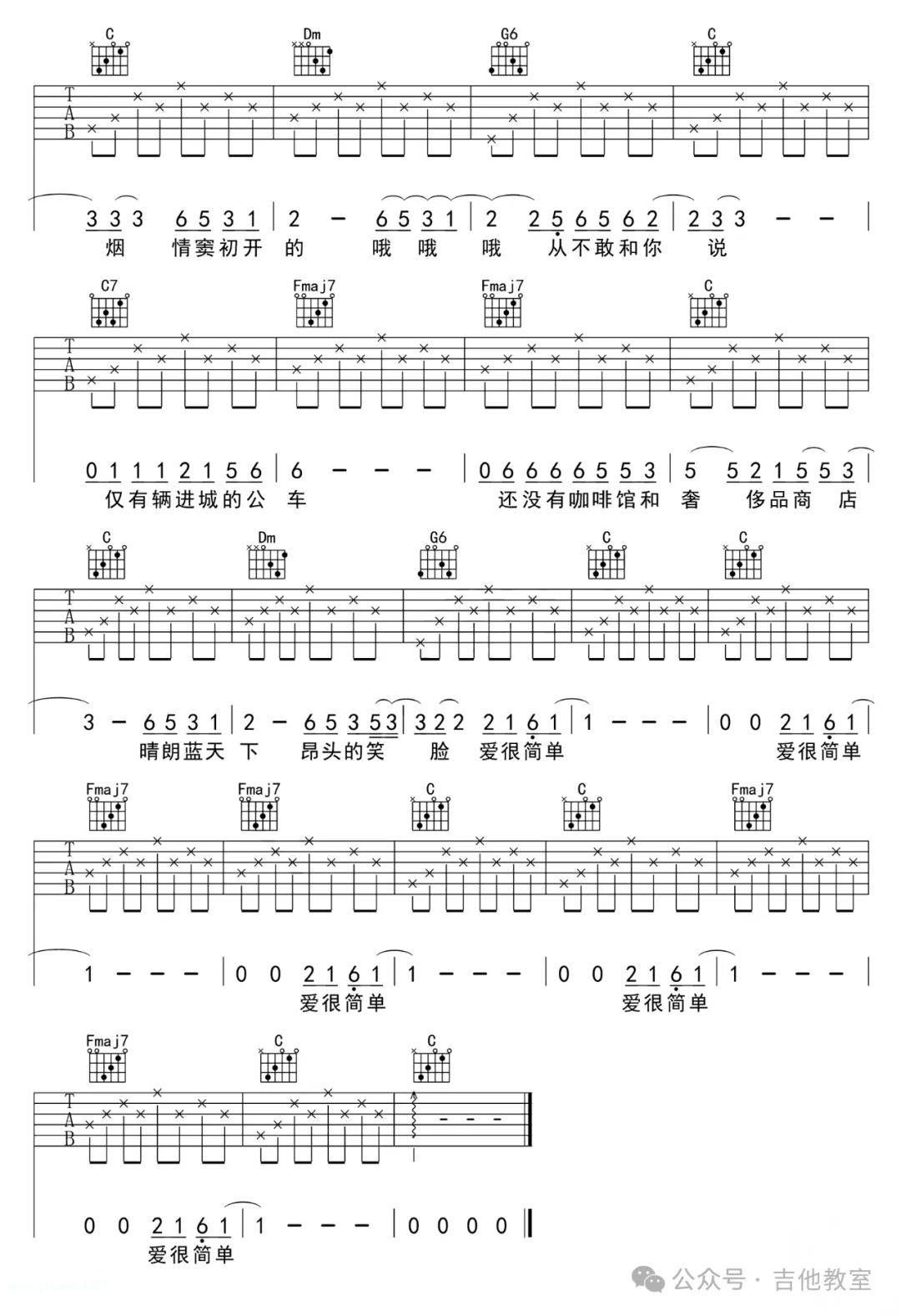这首歌充满了怀旧和温情,和弦简单,适合初学者练习。