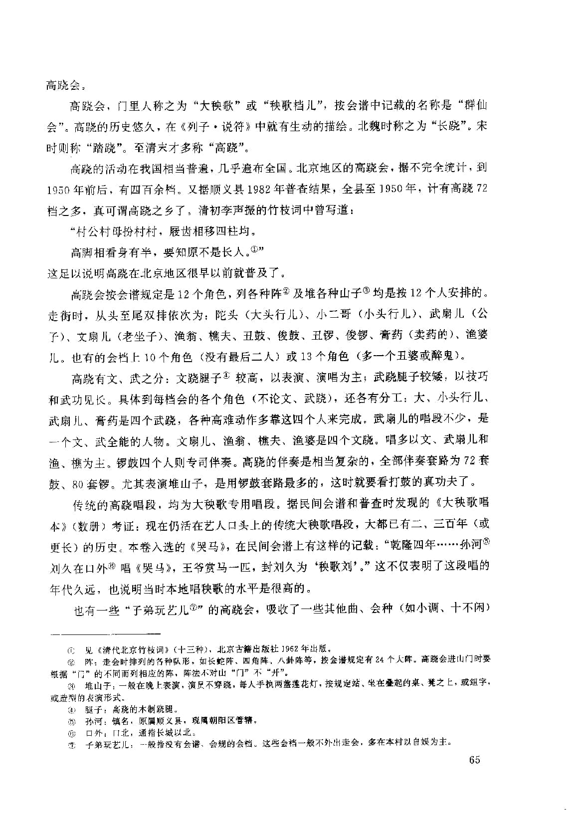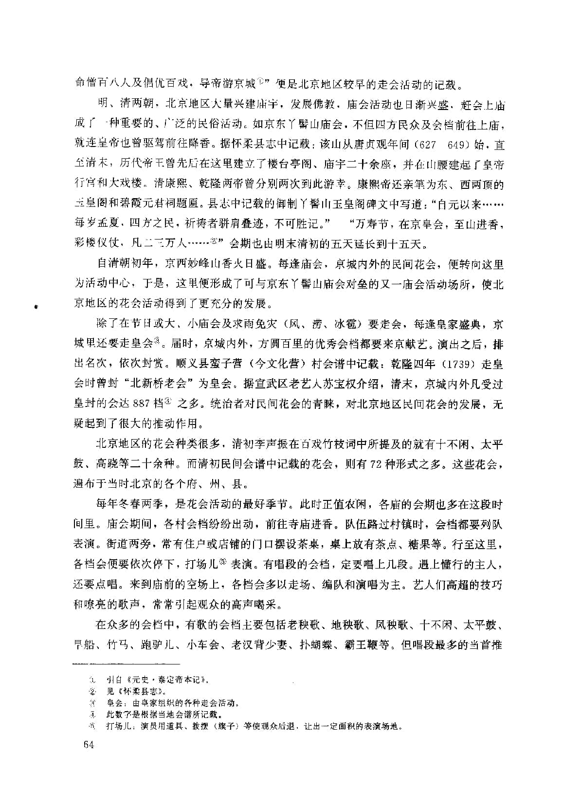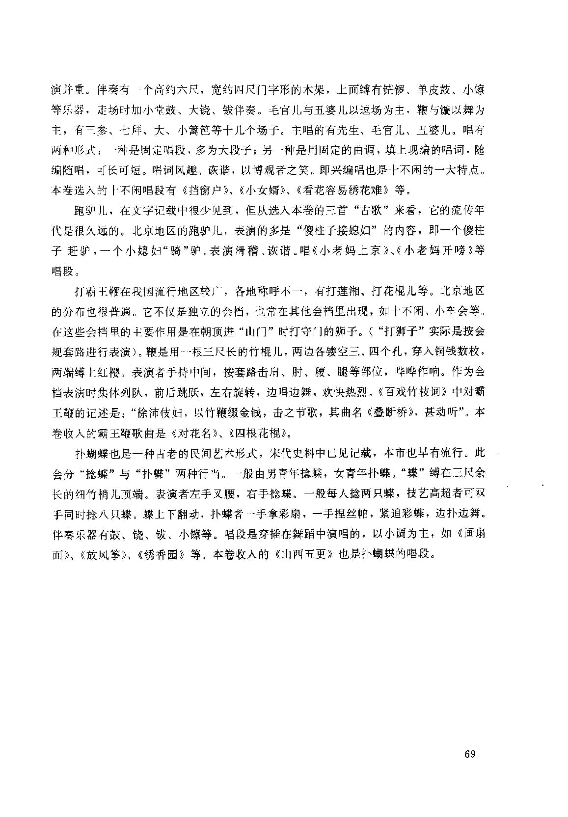 里,到月底始止。元宵行乐之盛始此。”便可说明这一情况。现在的很多会档,如竹马、大头和尚、扑蝴蝶、旱船等,在宋代便已流行。《武林旧事》中所记述宋代的民间社火,就有71种之多。